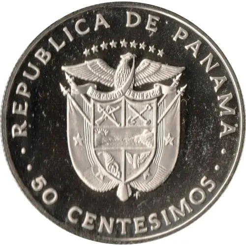 | Obverse lettering | REPUBLICA DE PANAMA ********* PRO MUNDI BENEFICIO FM 50 CENTESIMOS (Translation: Republic of Panama For the Benefit of the World FM 50 Centesimos) |