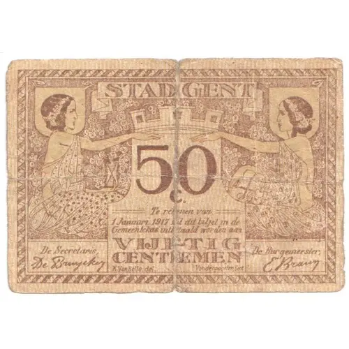 | Obverse lettering | STAD GENT 50 C VIJFTIG CENTEMEN |
