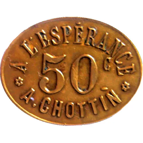| Obverse lettering | A L`ESPERANCE 50c A. CHOTTIN |