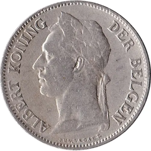 | Obverse lettering | ALBERT KONING DER BELGEN Jul. Lagae |