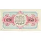 Blue frame with spikes in which the name of the Chamber of Commerce is shown. Within this frame is a red cross (horizontal and vertical) with the value of the bill. In the middle of the frame is a large circle with the redemption end date. |