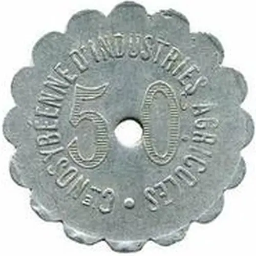 | Obverse lettering | Cie NOSYBEENNE D`INDUSTRIES AGRICOLES 50C |