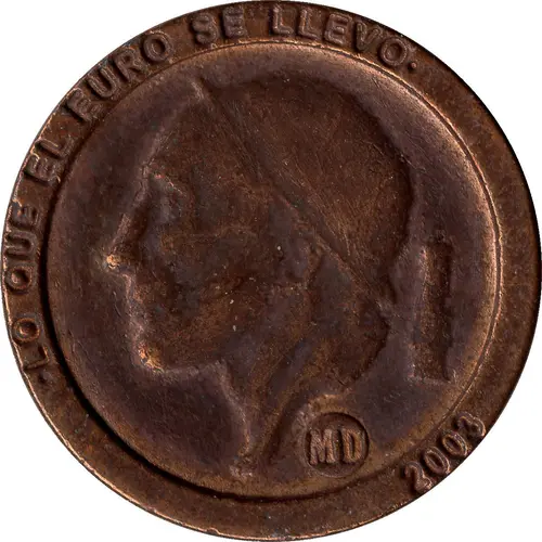 | Obverse lettering | LO QUE EL EURO SE LLEVO MD 2003 (Translation: Gone with the euro.) |