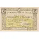 Obverse lettering 0,50 0,50 COMMUNE DE THEUX (ligne) BON DE CAISSE CINQUANTE CENTIMES ÉMIS ET GARANTI PAR LA COMMUNE DE THEUX. Ce Bon sera remboursable à la Caisse Communale de Theux aussitôt que la situation normale sera rétablie. THEUX, LE 27 JUILLET 1915 LE COLLÈGE : Le Secrétaire Le Bourgmestre (signature) (signature) Les Echevins, (signature) (signature) (dans un cadre centré :) VOIR AU VERSO LE CARACTÈRE D`AUTHENTICITÉ LITH. CH. VINCHE . VERVIERS.