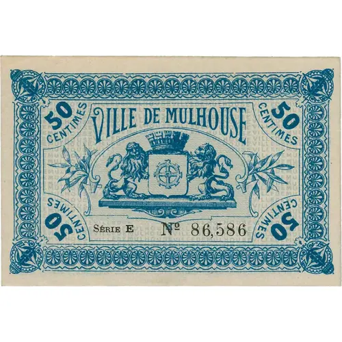 50 CENTIMES | 50 CENTIMES VILLE DE MULHOUSE SERIE E Nº86,586 50 CENTIMES | 50 CENTIMES |