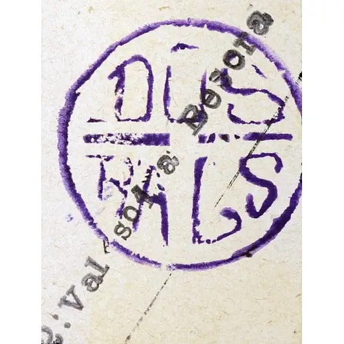 | Obverse description | Violet round stamp with face value and black lettering in black typewritten. |