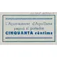 L`Ajuntament d`Agullana pagarà al portador CINQUANTA cèntims (Translation: The City Council of Agullana Will pay the bearer Fifty Centimos) |