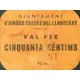 AJUNTAMENT d`AIGÜES TOSSES DEL LLOBREGAT VAL PER CINQUANTA CÈNTIMS (Translation: City Council of Aigües Tosses del Llobregat Voucher for Fifty Centimos) |