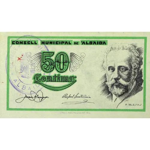 CONSELL MUNICIPAL DE ALBAIDA 50 Centims P. IGLESIAS (Translation: Municipal Council of Albaida 50 Centimos) |