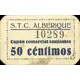 S. T. C. ALBERIQUE Cupón comercial canjeable 50 céntimos (Translation: Farm Workers Union Alberique Redeemable commercial coupon 50 Centimos) |