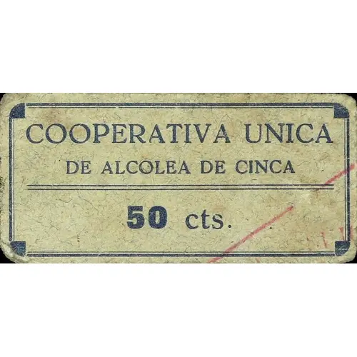 COPERATICA UNICA DE ALCOLEA DE CINCA 50 cts. (Translation: Unique Cooperative of Alcolea de Cinca 50 Centimos) |