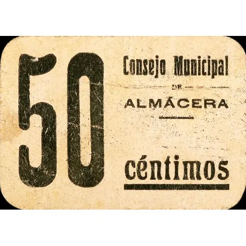 50 céntimos Consejo Municipal DE ALMÁCERA (Translation: 50 Centimos Municipal Council of Almácera) |