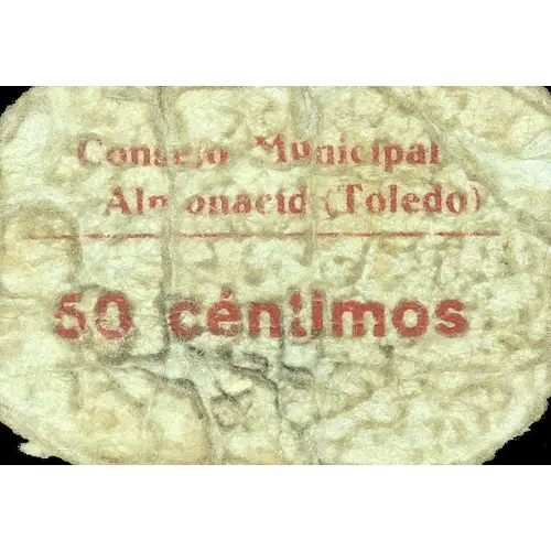 | Obverse lettering | Consejo Municipal de Almonacid (Toledo) 50 céntimos (Translation: Municipal Council of Almonacid (Toledo) 50 Centimos) |