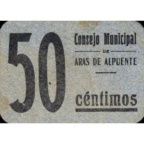 Obverse lettering 50 céntimos Consejo Municipal DE ARAS DE ALPUENTE