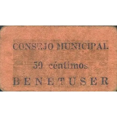 CONSEJO MUNICIPAL 50 céntimos BENETUSER (Translation: Municipal Council 50 Centimos Benetuser) |