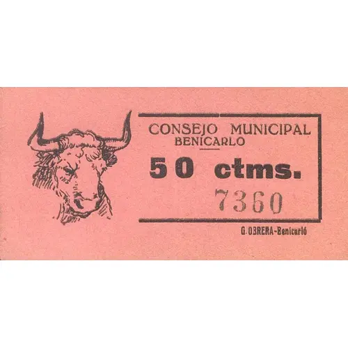 CONSEJO MUNICIPAL BENICARLO 50 ctms. (Translation: Municipal Council Benicarló 50 Centimos) |