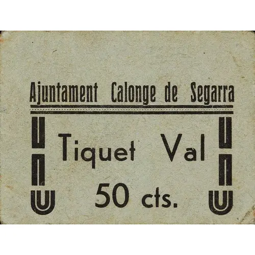Ajuntament Calonge de Segarra Tiquet Val 50 cts. (Translation: City Council Calonge de Segarra Ticket voucher 50 Centimos) |