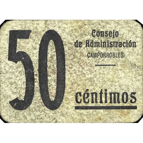 50 céntimos Consejo de Administración CAMPORROBLES (Translation: 50 Centimos Administrative Council Camporrobles) |