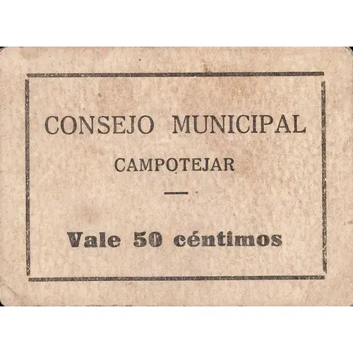 CONSEJO MUNICIPAL CAMPOTEJAR Vale 50 céntimos (Translation: Municipal Council Campotejar It`s worth 50 Centimos) |
