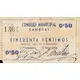 0`50 CONSEJO MUNICIPAL CAMUÑAS CINCUENTA CENTIMOS de curso legal en la localidad (Translation: Municipal Council Camuñas Fifty Centimos legal tender in the town) |