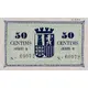 AJUNTAMENT DE CANTALLOPS 50 CENTIMS (Segons acord del 14 d`agost 1937) A canviar, per la Caixa Municipal, a la seva presentació (Translation: City Council of Cantallops 50 Centimos (According to the agreement of August 14, 1937) To be changed, by the Municipal Treasury, upon presentation) |