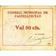 CONSELL MUNICIPAL DE CASTELLCIUTAT Val 50 cts. El Alcalde (Translation: Municipal Council of Castellciutat Voucher 50 Centimos The Mayor) |