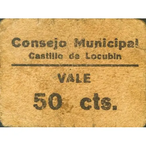 Consejo Municipal Castillo de Locubin VALE 50 cts. (Translation: Municipal Council Castillo de Locubin Value 50 Centimos) |