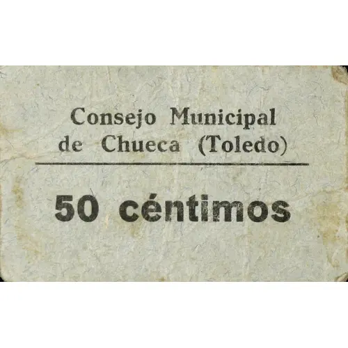 Consejo Municipal de Chueca (Toledo) 50 céntimos (Translation: Municipal Council of Chueca (Toledo) 50 Centimos) |