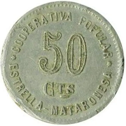 | Obverse lettering | COOPERATIVA POPULAR ESTRELLA - MATARONENSE 50 CTS |