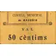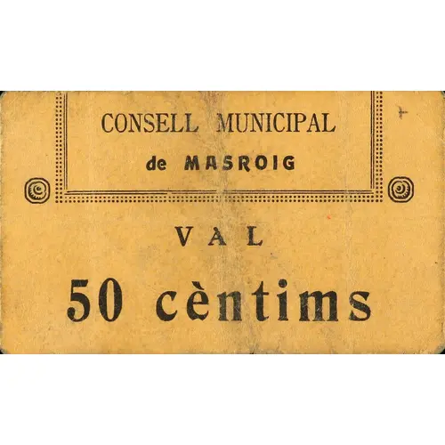 CONSELL MUNICIPAL de MASROIG VAL 50 cèntims (Translation: Municipal Council of Masroig Value 50 Centimos) |