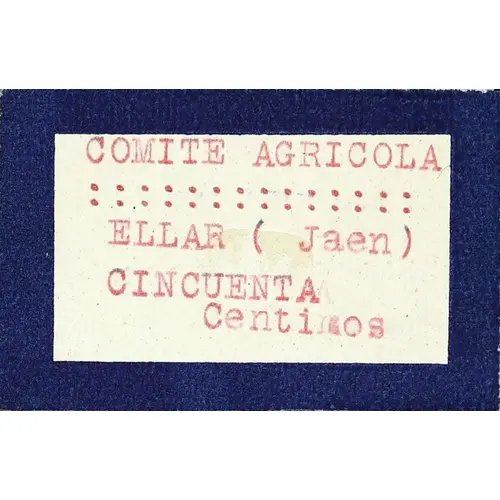 COMITE AGRICOLA ELLAR (Jaen) CINCUENTA Centimos (Translation: Agricultural Committee Ellar (Jaen) Fifty Centimos) |
