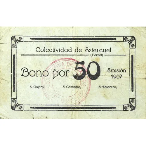 Colectividad de Estercuel (Teruel) Bono por 50 Emisión 1937 (Translation: Collectivity of Estercuel (Teruel) Bond for 50 Issue 1937) |