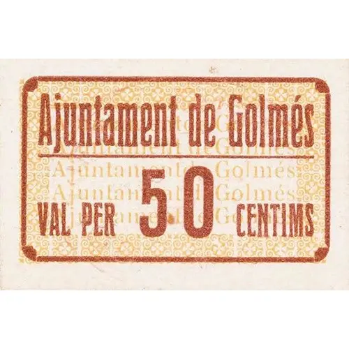 Ajuntament de Golmés VAL PER 50 CENTIMS (Translation: City Council of Golmés It`s worth 50 Centimos) |