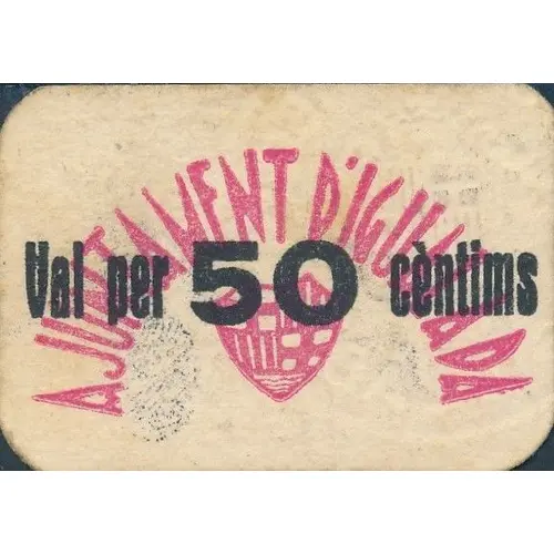 AJUNTAMENT D`IGUALADA Val per 50 cèntims (Translation: City Council of Igualada Valid for 50 Centimos) |