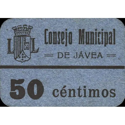 Consejo Municipal DE JÁVEA 50 céntimos (Translation: Municipal Council of Jávea 50 Centimos) |