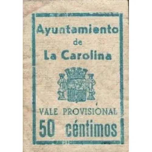 Ayuntamiento de La Carolina VALE PROVISIONAL 50 céntimos (Translation: City Council of La Carolina Provisional Voucher 50 Centimos) |