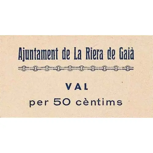 Ajuntament de La Riera de Gaià VAL per 50 cèntims (Translation: City Council of La Riera de Gaià Valid for 50 Centimos) |