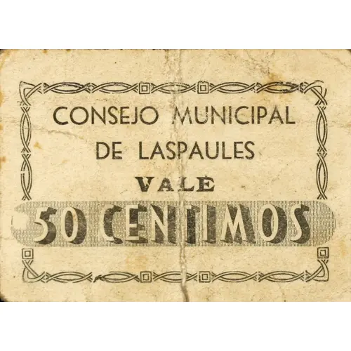 CONSEJO MUNICIPAL DE LASPAULES VALE 50 CENTIMOS (Translation: Municipal Council of Laspaules Voucher 50 Centimos) |
