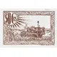 | Mô tả mặt sau | Brown banknote with harvester machine in wheat field with sun rays from face value |