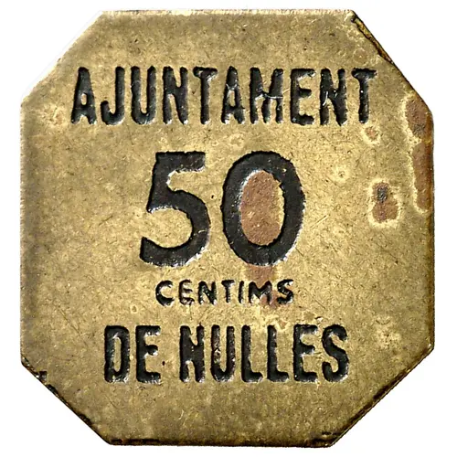 | Obverse lettering | AJUNTAMENT 50 CENTIMS DE NULLES |