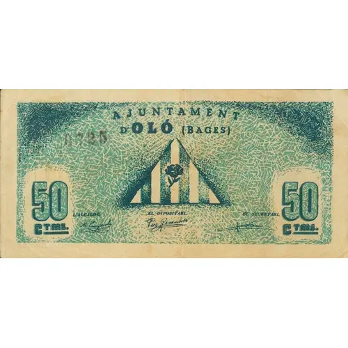 AJUNTAMENT D`OLÒ (BAGES) 50 CTMS. (Translation: City Council of Oló (Bages) 50 Centimos) |