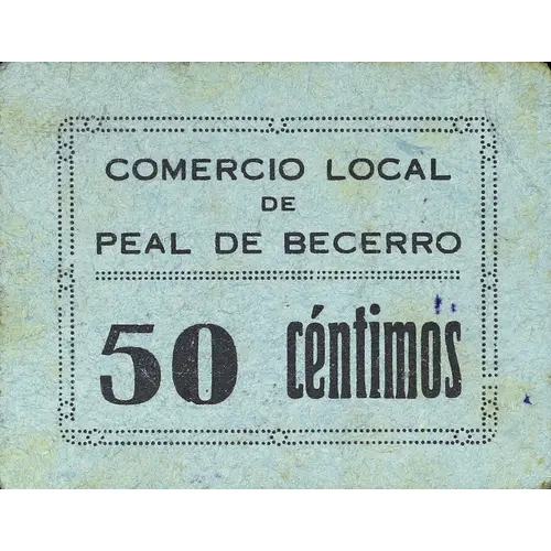 COMERCIO LOCAL DE PEAL DE BECERRO 50 céntimos (Translation: Local Commerce of Peal de Becerro 50 Centimos) |