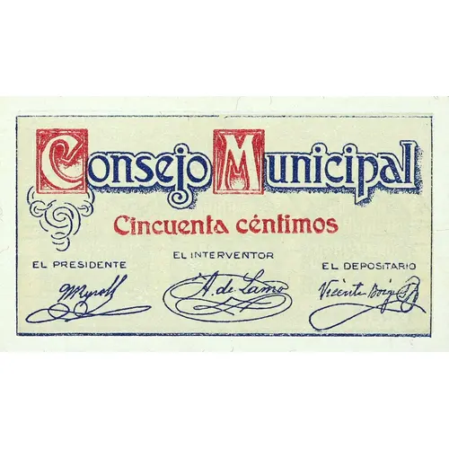 CONSEJO MUNICIPAL Cincuenta céntimos (Translation: Municipal Council Fifty Centimos) |