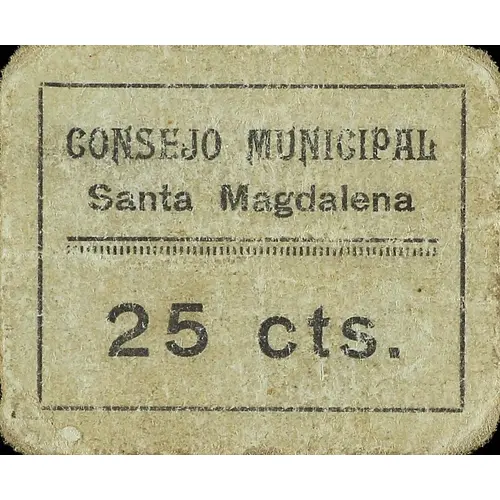 CONSEJO MUNICIPAL Santa Magdalena Vale por 25 cts. (Translation: Municipal Council Santa Magdalena 25 Centimos) |