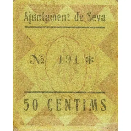 Ajuntament de Seva 50 CENTIMS (Translation: City Council of Seva 50 Centimos) |