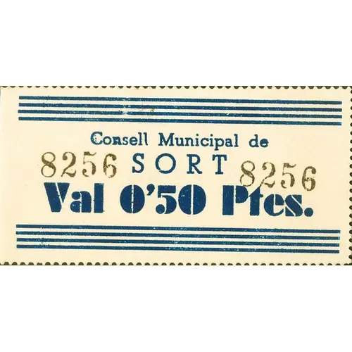 | Ön yüz lejandı | Consell Municipal de SORT Val 0`50 Ptes. (Translation: Municipal Council of Sort Voucher 0.50 Pesetas) |