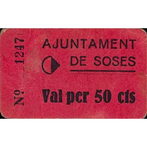 AJUNTAMENT DE SOSES Val per 50 cts (Translation: City Council of Soses Voucher for 50 Centimos) |
