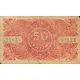 | Obverse description | Red lettering with floral perimeter framing, seated peasant woman, with a bunch of wheat and a sickle in her right hand, symbolizing the local agricultural wealth |