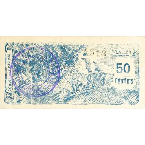 Segell Municipal VILALLER 50 Céntims (Translation: Municipal stamp Vilaller 50 Centimos) |