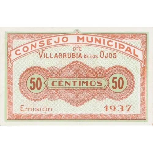 CONSEJO MUNICIPAL DE VILLARRUBIA DE LOS OJOS 50 CÉNTIMOS 50 Emisión 1937 (Translation: Municipal Council of Villarrubia de los Ojos 50 Centimos 50 Issue 1937) |